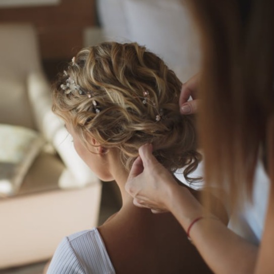 Am schönsten Tag deines Lebens möchtest du dich rundum wohl fühlen und der perfekte Ort dafür ist dein zu Hause. In deiner Wohlfühloase kreiere ich deine perfekt sitzende Hochzeitsfrisur und auf Wunsch auch das passende Make-up.